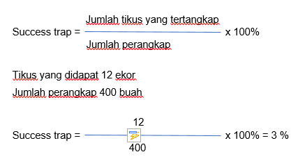 Analisis data kepadatan tikus dihitung menggunakan success trap. Success trap adalah persentase tikus yang tertangkap oleh perangkap, dihitung dengan cara jumlah tikus yang didapat dibagi dengan jumlah perangkap dikalikan 100%.