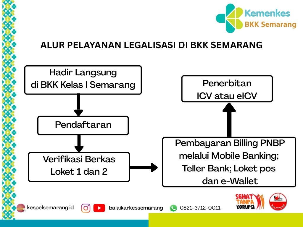 Bagi seseorang yang hendak melaksanakan Umroh setelah sebelumnya menerima vaksin internasional (meningitis) pada saat keberangkatan haji sebelumnya (masih dalam rentang waktu perlindungan vaksin) maka dapat dilakukan legalisasi penerbitan eICV di UPT Bidang Kekarantinaan Kesehatan seperti di BKK Kelas I Semarang. Berikut alur legalisasi penerbitan eICV dan ICV di BKK Kelas I Semarang