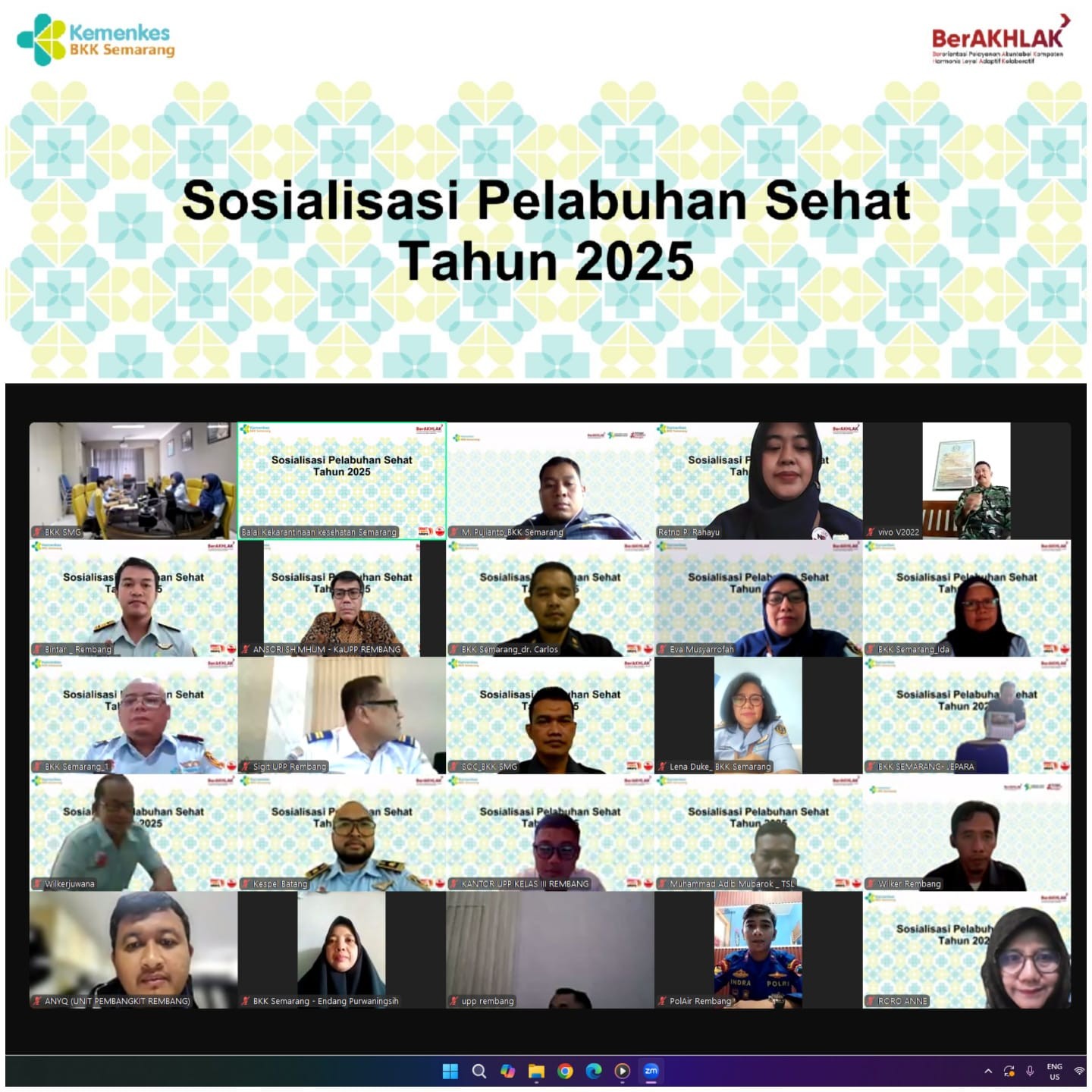 Kegiatan Pelabuhan Sehat ini disambut sangat baik dan mendapat support yang positif oleh Otoritas Pelabuhan Rembang yakni Kantor Unit Penyelenggara Pelabuhan Kelas III Rembang. Untuk itu salah satu langkah upaya mulai dilakukan untuk bisa bersinergi bersama unsur instansi terkait dan stakeholder untuk mewujudkan predikat Pelabuhan Sehat di Pelabuhan Rembang. Sinergi ini salah satunya dalam bentuk pertemuan sosialisasi pembentukan forum Pelabuhan Sehat yang dilaksanakan secara virtual melalui zoom pada tanggal 18 Maret 2025. Forum Pelabuhan Sehat ini nantinya diharapkan dapat meningkatakan koordinasi dan Kerjasama antar instansi dan stakeholder dalam penyelenggaraan dan perwujudan Pelabuhan Sehat di Rembang