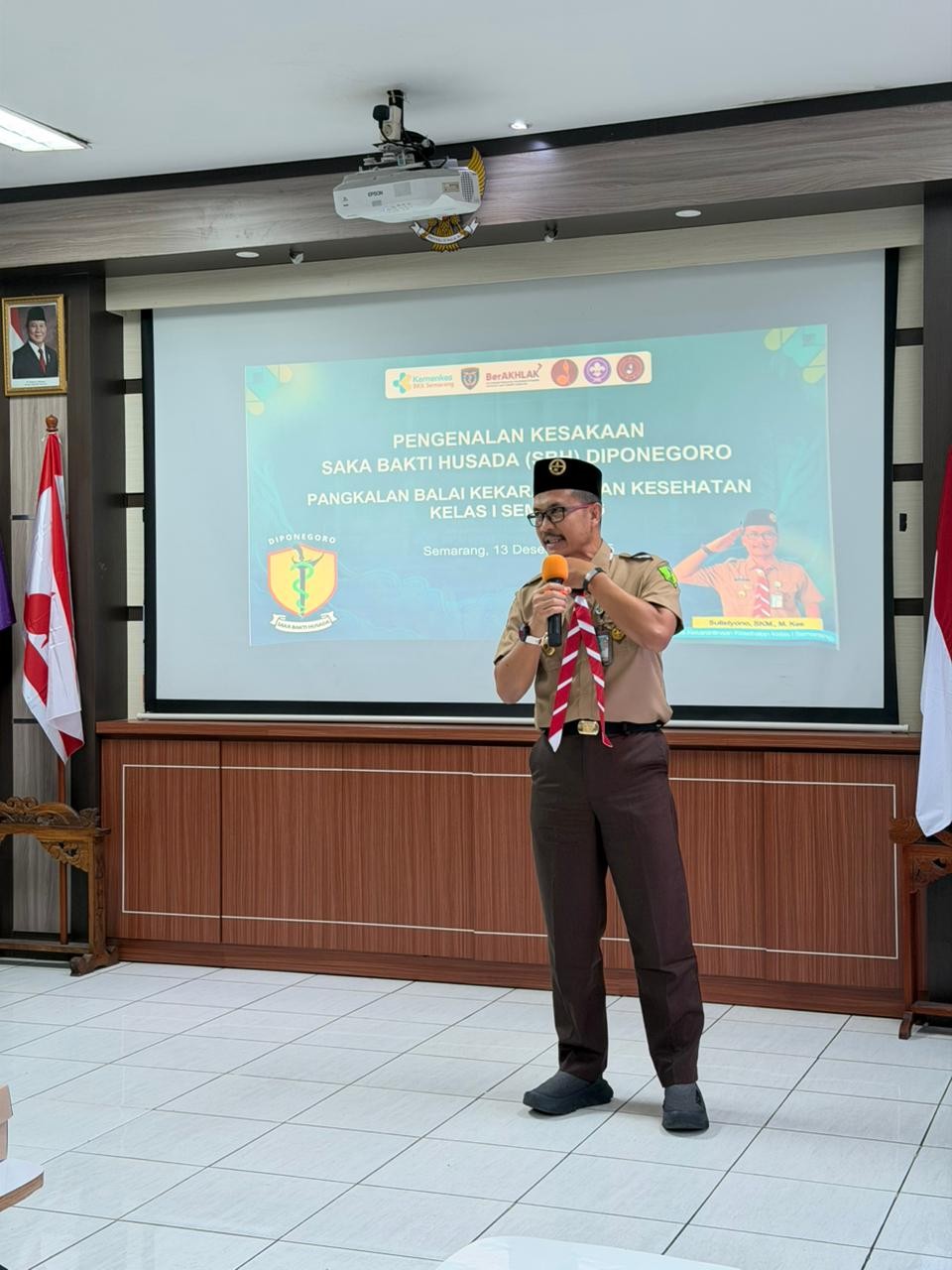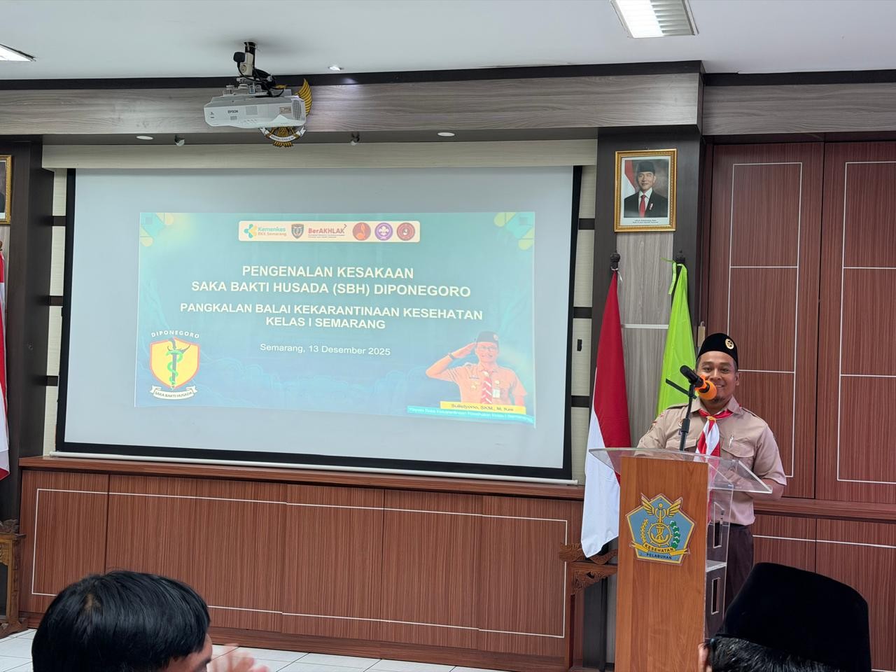 Dalam rangka memperkenalkan Saka Bakti Husada (SBH) Pangkalan Diponegoro serta meningkatkan pemahaman generasi muda terhadap kekarantinaan kesehatan, Balai Kekarantinaan Kesehatan (BKK) Kelas I Semarang menyelenggarakan kegiatan Pengenalan Kesakaan pada 13 Desember 2025 di Aula BKK Kelas I Semarang.