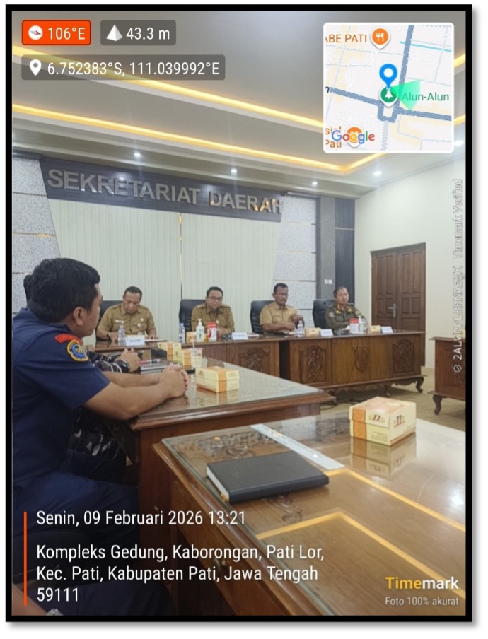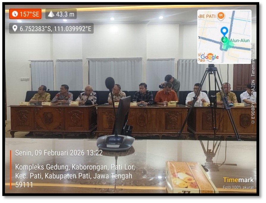 Audiensi bertempat di ruang Kembang Joyo Gedung Sekretariat Daerah Pemerintah Kabupaten Pati dan dilaksanakan pada Senin 9 Februari 2026 pukul 13.00 WIB.