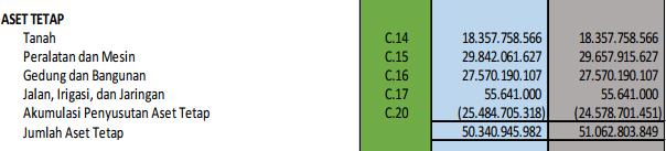 Saldo aset tetap berupa Peralatan dan Mesin per 30 September 2024 dan 31 Des 2023 adalah Rp29.842.061.627 dan Rp29.657.915.627 Mutasi nilai Peralatan dan Mesin tersebut dapat dijelaskan sebagai berikut: